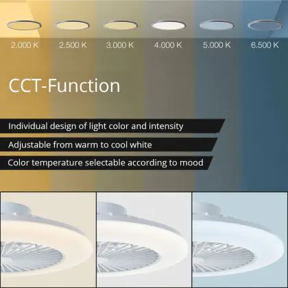 Beschreibung Brilliant Salerno Ventilator Plastik Metall Weiß 36W 4700lm - 830-865 CCT+RGB | 485mm - Fernsteuerung Dimmbar