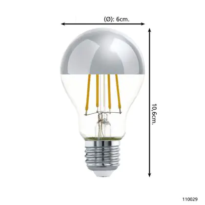 Die Eglo LED Birne E27 Fadenlampe Spiegel 7.3W 806lm - 827 Extra Warmweiß | Ersatz Für 60W ist eine effiziente E27 LED-Lampe mit Retrodesign und der perfekte Ersatz für Ihre konventionellen 60W Lampen mit E27. Zudem strahlt sie Licht in der Farbtemperatur 2700K - Extra Warmweiß aus und punktet durch eine lange Lebensdauer.
