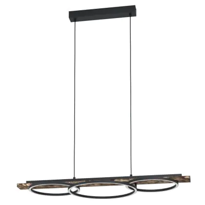 Eglo Pendelleuchte Boyal Holz Schwarz, Rostig 40.5W 3600lm - 830 Warmweiß | Dimmbar