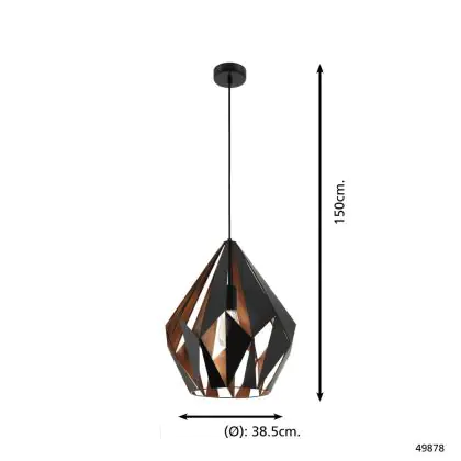 Eglo Pendelleuchte Carlton 1 Schwarz, Bernstein | Geeignet für E27