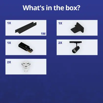 Beschreibung Komplettset 1-Phasen Rail 1 Meter Schwarz | incl. 2x Spot + GU10 2700K 3W Dimmbar + Abschlusskappe, Stromanschluss