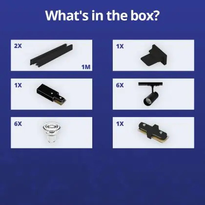Herstellername | Complete Straight 2-meter 1-Phase Track Set Black incl. 6x Spot fixture + GU10 2700K 3W Dim – 2x 1 M | |