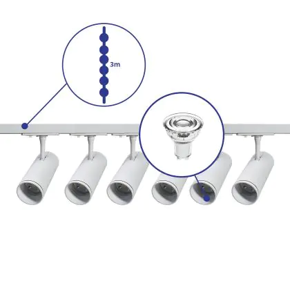 Herstellername | Complete Straight 3-meter 1-Phase Track Set White incl. 6x Spot fixture + GU10 2700K 3W Dim – 2x 1.5 | |
