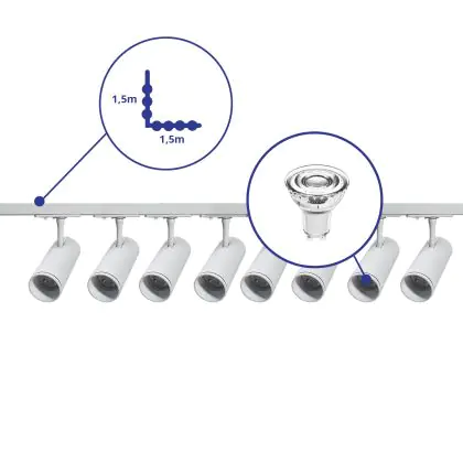 Herstellername | Complete L shaped 1-Phase Track Set White incl. 8x Spot fixture + GU10 2700K 3W Dim – 1,5 x 1,5 mete | |