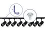 Beschreibung Komplettset 1-Phasen Rail L 1,5 x 2 Meter Schwarz | incl. 8x Spot + GU10 2700K 3W Dimmbar + Abschlusskappe, Stromanschluss und L -Verbinder