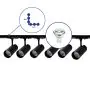 Beschreibung Komplettset 1-Phasen Rail L 1 x 1 Meter Schwarz | incl. 6x Spot + GU10 2700K 3W Dimmbar + Abschlusskappe, Stromanschluss und L -Verbinder