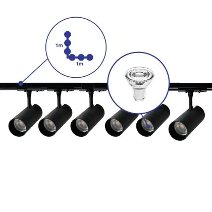 Herstellername | Complete L shaped 1-Phase Track Set Black incl. 6x Spot fixture + GU10 2700K 3W Dim – 1 x 1 meter i | |