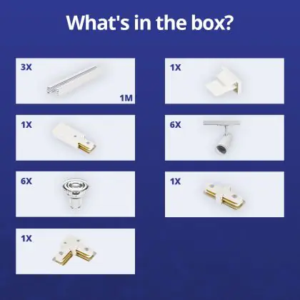 Herstellername | Complete L shaped 1-Phase Track Set White incl. 6x Spot fixture + GU10 2700K 3W Dim – 1 x 2 meter i | |