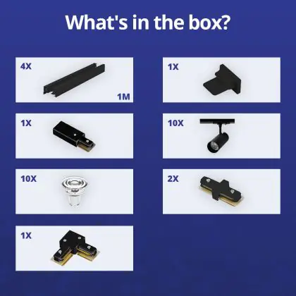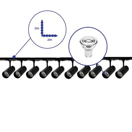 Herstellername | Complete L shaped 1-Phase Track Set Black incl. 10x Spot fixture + GU10 2700K 3W Dim – 2 x 2 meter | |