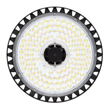 Diese LED-Hallenleuchte punktet mit einer Leuchtkraft von 30.000 Lumen (lm) und strahlt damit besonders viel Helligkeit aus. Die ebenfalls hohe Lichtausbeute von 140 lm/W zeugt von einer guten Effizienz. Wenn Sie die Stärke dieses Lichts mit dem Ihrer konventionellen Lichtlösung vergleichen möchten, empfehlen wir Ihnen einen Blick in unsere praktische Tabelle Lumen in Watt umrechnen.