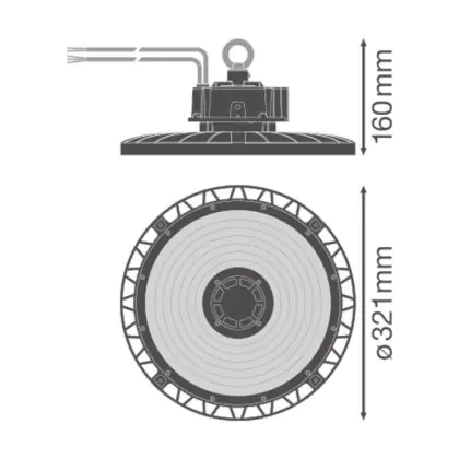 Beschreibung Ledvance LED Highbay Gen 5 Aluminium Schwarz 150W 26250lm 70D - 865 Tageslichtweiß | IP66 - 1-10V Dimmbar