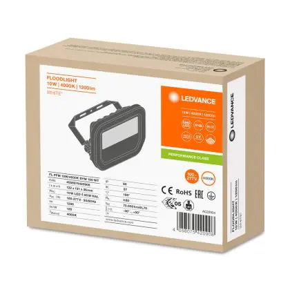 Die LED ist mit IP65 klassifiziert. Das bedeutet, der Fluter ist vollständig staubdicht. Zudem ist das Produkt gegen starkes Strahlwasser aus einem beliebigen Winkel geschützt.