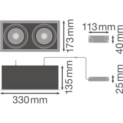 Beschreibung Ledvance LED-Spot Quadrat Multi schwenkbar Schwarz-Weiß 2x30W 5400lm 38D - 840 Kaltweiß | Ausschnitt 320x160mm