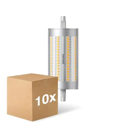 Die Mehrfachpackung 10x Philips Corepro LED Lineair R7s 118mm 17.5W 2460lm - 830 Warmweiß | Dimmbar - Ersatz Für 150W ist eine effiziente R7s LED-Lampe und der perfekte Ersatz für Ihre konventionelle Halogen-Stablampe mit 150W. Zudem strahlt sie Licht in der Farbtemperatur 3000K - Warmweiß aus und punktet durch eine lange Lebensdauer.