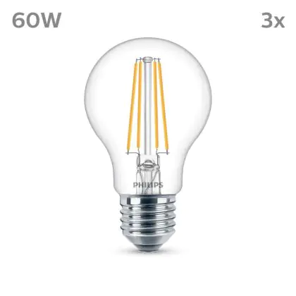 Die Mehrfachpackung 3x Philips Glühbirne LED E27 Birne Fadenlampe Klar 7W 850lm - 840 Kaltweiß ist eine effiziente E27 LED-Lampe mit Retrodesign und der perfekte Ersatz für Ihre konventionellen W Lampen mit E27. Zudem strahlt sie Licht in der Farbtemperatur 4000K - Kaltweiß aus und punktet durch eine lange Lebensdauer.
