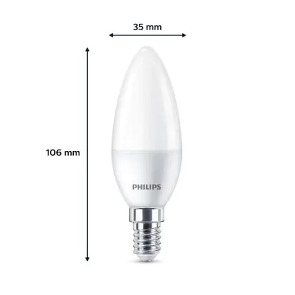 Die Mehrfachpackung 6x Philips Glühbirne LED E14 Kerze Matt 5W 470lm - 827 Extra Warmweiß ist eine effiziente E14 LED-Lampe und der perfekte Ersatz für Ihre konventionellen W Lampen mit E14-Sockel. Zudem strahlt sie Licht in der Farbtemperatur 2700K - Extra Warmweiß aus und punktet durch eine lange Lebensdauer.