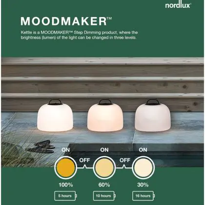 Beschreibung Nordlux Kettle Batterieleuchte Weiß 4.8W 300lm - 827 Extra Warmweiß | 3-Stufen Dimmbar