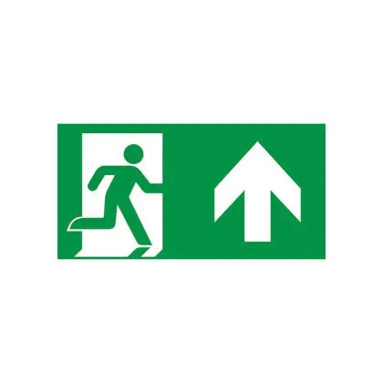Das Piktogramm eignet sich als Rettungswegzeichen für die LED-Notbeleuchtung von Optilux. Achtung: Die Leuchte ist nicht enthalten, lediglich das Schild mit dem Pfeil nach oben.