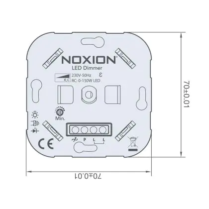 - Einfache Installation: Der Dimmer ist für die Unterputzmontage konzipiert und verfügt über Schraubklemmen, die eine schnelle und sichere Installation ermöglichen. Mit Abmessungen von 70 mm x 70 mm passt er in handelsübliche Unterputzdosen.