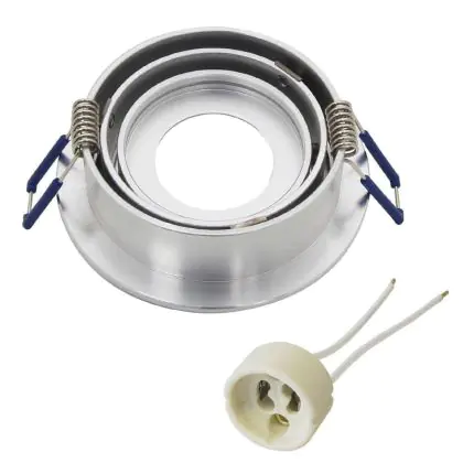 Das graue Aluminiumgehäuse hat einen Gesamtdurchmesser von 92 mm und einen Ausschnitt von 80 mm, in dem das GU10-Leuchtmittel eingebaut wird. Die Fassung verfügt über eine Einbautiefe von 75 mm und kann um bis zu 40° geschwenkt werden.