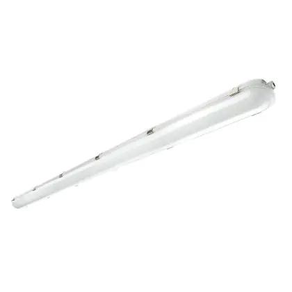 Die Noxion LED-Feuchtraumleuchte der Reihe Standard ist 150 cm lang. Sie ersetzt zwei konventionelle Leuchten à 58 Watt und verbraucht dabei selbst nur 55 Watt. Diese LED hat eine tageslichtweiße Farbtemperatur (6.500 Kelvin), womit auch Details naturgetreu wiedergegeben werden. Das Produkt ist IP65- und IK08-klassifiziert und kann somit auch in Außenbereichen Einsatz finden.