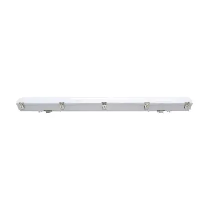 Die Noxion LED-Feuchtraumleuchte der Reihe Pro ist 120 cm lang. Sie ersetzt zwei herkömmliche Leuchten à 36 Watt und verbraucht dabei selbst lediglich 38 Watt. Diese LED hat eine tageslichtweiße Farbtemperatur (6.500 Kelvin). Sie ist IP66- und IK08-klassifiziert und dementsprechend auch in Außenbereichen anwendbar. Dank der praktischen Durchgangsverdrahtung können Sie ganz einfach mehrere Leuchten miteinander verbinden.