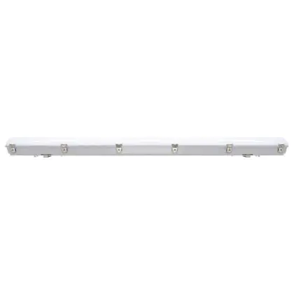 Die Noxion LED-Feuchtraumleuchte der Reihe Pro ist 150 cm lang und ersetzt zwei herkömmliche Leuchten mit je 58 Watt. Selbst hat die LED einen Verbrauch von nur 66 Watt – eine kurze Amortisationszeit Ihrer Anschaffungskosten ist somit garantiert. Mit einem Wert von 4.000 Kelvin hat sie eine kaltweiße Farbtemperatur. Das Produkt ist IP66- und IK08-klassifiziert und damit besonders robust. Hinweis: Dieses Produkt ist keine Notfallbeleuchtung.