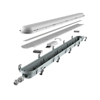 Die Noxion LED Feuchtraumleuchte Poseidon V3.0 30W 3900/4200lm - 830-865 CCT | 120cm - Durchgangsverdrahtung (5x2.5mm2) - Dali Dimmbar ist eine Feuchtraumleuchte. Sie strahlt Licht in der Farbtemperatur 3000K - 4000K - 6500K CCT aus und punktet durch eine lange Lebensdauer. Diese Leuchte ist speziell zur Verwendung in Feuchträumen (Keller, Waschräume, etc.) vorgesehen.