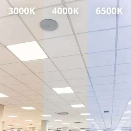 Das LED-Panel kommt mit der Farbtemperatur 6500K - Tageslichtweiß daher. Als Faustregel gilt: Je niedriger der Kelvinwert, desto gemütlicher wirkt das Licht.