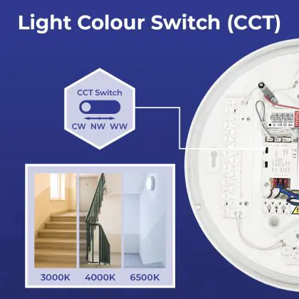2. CCT: Sie wählen über einen Schalter aus 2 oder 3 festen Farben aus, z. B. Warmweiß oder Kaltweiß.