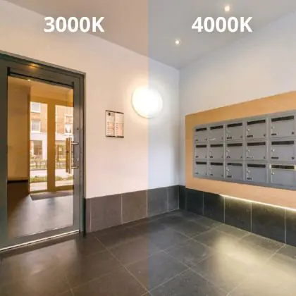 Diese Noxion-Leuchte hat einen Kelvin-Wert von 4.000 – das Licht besitzt eine kaltweiße Lichtfarbe. Verwenden Sie diese Leuchte für konzentrierte Arbeitsumgebungen sowie für Parkhäuser und -garagen, Treppenhäuser und Flure.