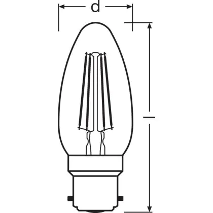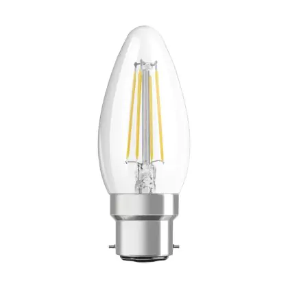 Die Osram Classic LED B22d Kerze Fadenlampe Klar 4W 470lm - 827 Extra Warmweiß | Ersatz für 40W ist eine effiziente B22d LED-Lampe mit Retrodesign und der perfekte Ersatz für Ihre konventionellen 40W Lampen mit B22d. Zudem strahlt sie Licht in der Farbtemperatur 2700K - Extra Warmweiß aus und punktet durch eine lange Lebensdauer.