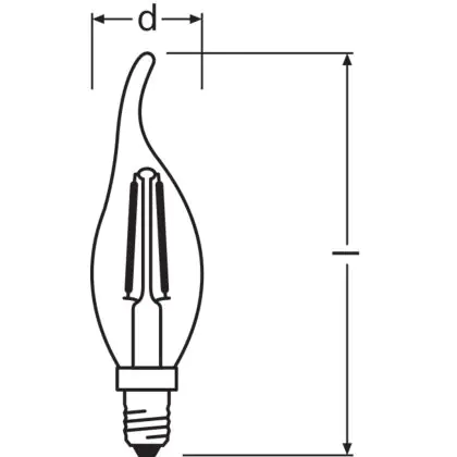 Beschreibung Osram Classic LED E14 Gebogen-tip candle Fadenlampe Klar 2.5W 250lm - 827 Extra Warmweiß | Ersatz Für 25W