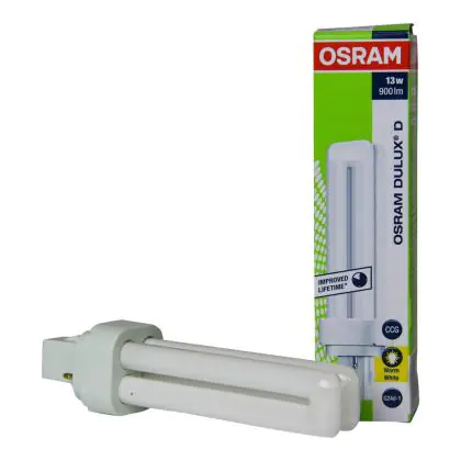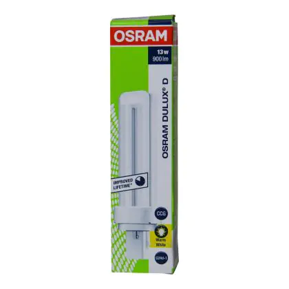 Die Osram Dulux D 13W - 830 Warmweiß | 2-Pins ist eine Kompaktleuchtstofflampe von Osram. Das Produkt mit 2 Pins strahlt Licht in der Farbtemperatur 3000K - Warmweiß aus und punktet durch eine lange Lebensdauer.