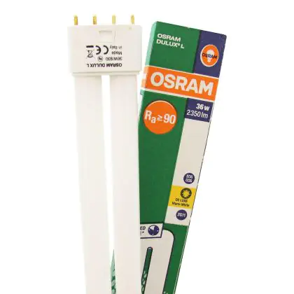 Die Osram Dulux L De Luxe 36W - 930 Warmweiß | 4-Pins - Höchste Farbwiedergabe ist eine Kompaktleuchtstofflampe von Osram. Das Produkt mit 4 Pins strahlt Licht in der Farbtemperatur 3000K - Warmweiß aus und punktet durch eine lange Lebensdauer.