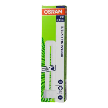 Osram Dulux S/E sind kompakte Leuchtstofflampen, die mit einem elektronischen Vorschaltgerät zu verwenden sind. Osram DULUX S/E 9W/840 2G7 Lumilux Cool White sind mit einem 2G7 Sockel-Typ Pins ausgestattet. Die Größe beträgt 14,4 cm.