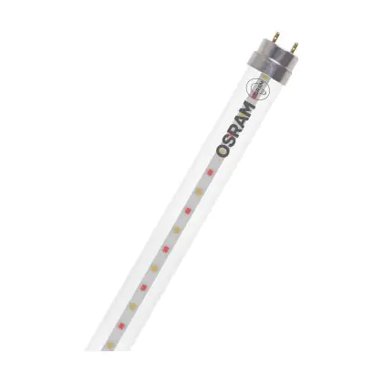 Die Osram LED Röhre T8 Fluora (EM/Mains) Standard Output 6.6W 450lm - 825 Extra Warmweiß | 60cm - Ersatz Für 18W ist eine effiziente LED-Röhre und der perfekte Ersatz für Ihre konventionelle Leuchtstoffröhre mit 18W und einem G13. Die Röhre hat eine Länge von 604 mm und einen Durchmesser von 27 mm. Zudem strahlt das Produkt Licht in der Farbtemperatur 2500K - Extra Warmweiß aus und punktet durch eine lange Lebensdauer.