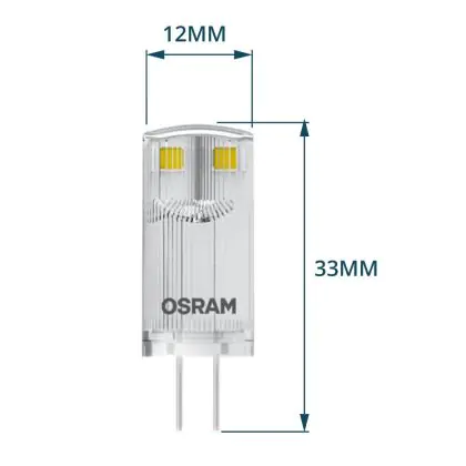 Die Osram Parathom LED Pin G4 0.9W 100lm - 827 Extra Warmweiß | Ersatz für 10W ist eine effiziente G4 LED-Lampe und der perfekte Ersatz für Ihre konventionelle Halogenlampe mit 10W und einem G4-Sockel. Die Stifte haben einen Abstand von 4 mm. Zudem strahlt das Produkt Licht in der Farbtemperatur 2700K - Extra Warmweiß aus und punktet durch eine lange Lebensdauer.