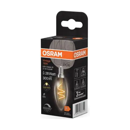 Die Osram Vintage 1906 LED Classic Slim E14 Kerze Fadenlampe Klar 3.1W 300lm - 927 Extra Warmweiß | Höchste Farbwiedergabe - Dimmbar - Ersatz Für 25W ist eine effiziente E14 LED-Lampe mit Retrodesign und der perfekte Ersatz für Ihre konventionellen 25W Lampen mit E14. Zudem strahlt sie Licht in der Farbtemperatur 2700K - Extra Warmweiß aus und punktet durch eine lange Lebensdauer.