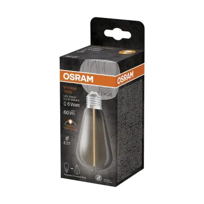 Die Osram Vintage 1906 LED E27 Special Fadenlampe Klar Edison 2.2W 60lm - 818 Extra Warmweiß | Ersatz Für 15W ist eine effiziente E27 LED-Lampe mit Retrodesign und der perfekte Ersatz für Ihre konventionellen 15W Lampen mit E27. Zudem strahlt sie Licht in der Farbtemperatur 1800K - Extra Warmweiß aus und punktet durch eine lange Lebensdauer.