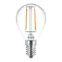 Die Philips Corepro LED Lustre E14 Kugel Fadenlampe Klar 2.2W 250lm - 840 Kaltweiß | Ersatz für 25W ist eine effiziente E14 LED-Lampe mit Retrodesign und der perfekte Ersatz für Ihre konventionellen 25W Lampen mit E14. Zudem strahlt sie Licht in der Farbtemperatur 4000K - Kaltweiß aus und punktet durch eine lange Lebensdauer.
