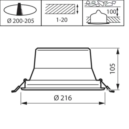 Beschreibung Philips LED Downlight Coreline DN142B Aluminium Weiß 19.2W 2300lm 60D - 840 Kaltweiß | Ausschnitt 200mm - IP54 - Weiß Reflektor