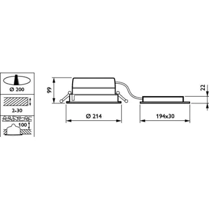 Beschreibung Philips LED Downlight LuxSpace Kompakt geringe Höhe DN570B 20.9W 2600lm 80D - 830 Warmweiß | 214mm - Dimmbar - Aluminium Reflektor - Power Over Ethernet