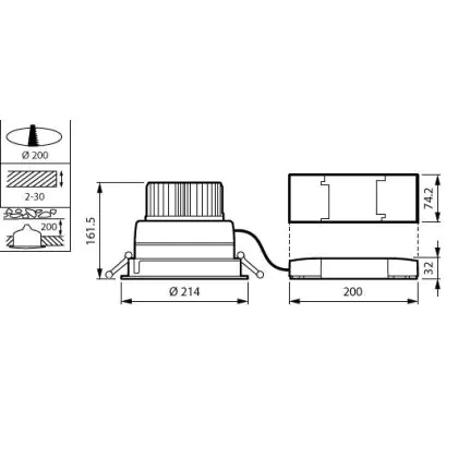 Beschreibung Philips LED Downlight LuxSpace Kompakt geringe Höhe DN570B 52.8W 6200lm 80D - 840 Kaltweiß | 214mm - Aluminium Reflektor