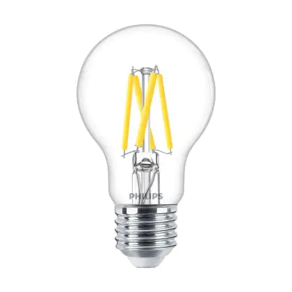 Die Philips Master LED E27 Birne Fadenlampe Klar 3.4W 470lm - 922-927 Dim To Warm | Höchste Farbwiedergabe - Dimmbar - Ersatz Für 40W ist eine effiziente E27 LED-Lampe mit Retrodesign und der perfekte Ersatz für Ihre konventionellen 40W Lampen mit E27. Zudem strahlt sie Licht in der Farbtemperatur 2200K - 2700K Dim To Warm aus und punktet durch eine lange Lebensdauer.