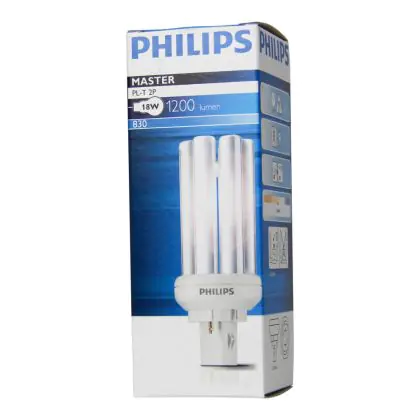 Philips PL-T 2P sind Kompakt-Leuchtstofflampen mit separater Spannungsversorgung. Sie sind sehr energieeffizient und müssen mit einem ferromagnetischen Vorschaltgerät verwendet werden. Die Lampen bestehen aus 6 Rohren und einem 2-poligen Sockel. Philips PL-T 18W 840 2P sind mit einem GX24d-2 Sockel-Typ ausgestattet und sind 119 mm lang.