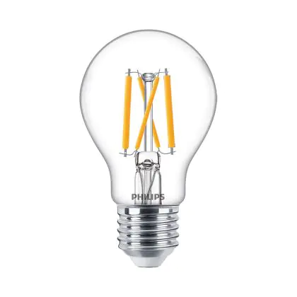 Die Philips MASTER Value LED Glühbirne E27 Birne Klar 3.4W 470lm 922 - 927 Dim To Warm | Höchste Farbwiedergabe - Dimmbar - Ersatz Für 40W ist eine effiziente E27 LED-Lampe und der perfekte Ersatz für Ihre konventionellen 40W Lampen mit E27-Sockel. Zudem strahlt sie Licht in der Farbtemperatur 2200K - 2700K Dim To Warm aus und punktet durch eine lange Lebensdauer.