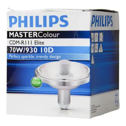 Die Philips MASTERColour GX8.5 CDM-R111 Elite 70W 10D - 930 Warmweiß | Höchste Farbwiedergabe ist eine Gasentladungslampe von Philips. Das Produkt mit einem GX8.5 Sockel strahlt Licht in der Farbtemperatur 3000K - Warmweiß aus und punktet durch eine lange Lebensdauer.