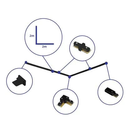 Beschreibung Rail Set 1-Phasen L 2 x 2 Meter Schwarz |incl. Abschlusskappe, Stromanschluss und L -Verbinder