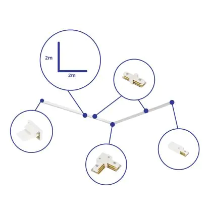 Beschreibung Rail Set 1-Phasen L 2 x 2 Meter Weiß | incl. Abschlusskappe, Stromanschluss und L -Verbinder